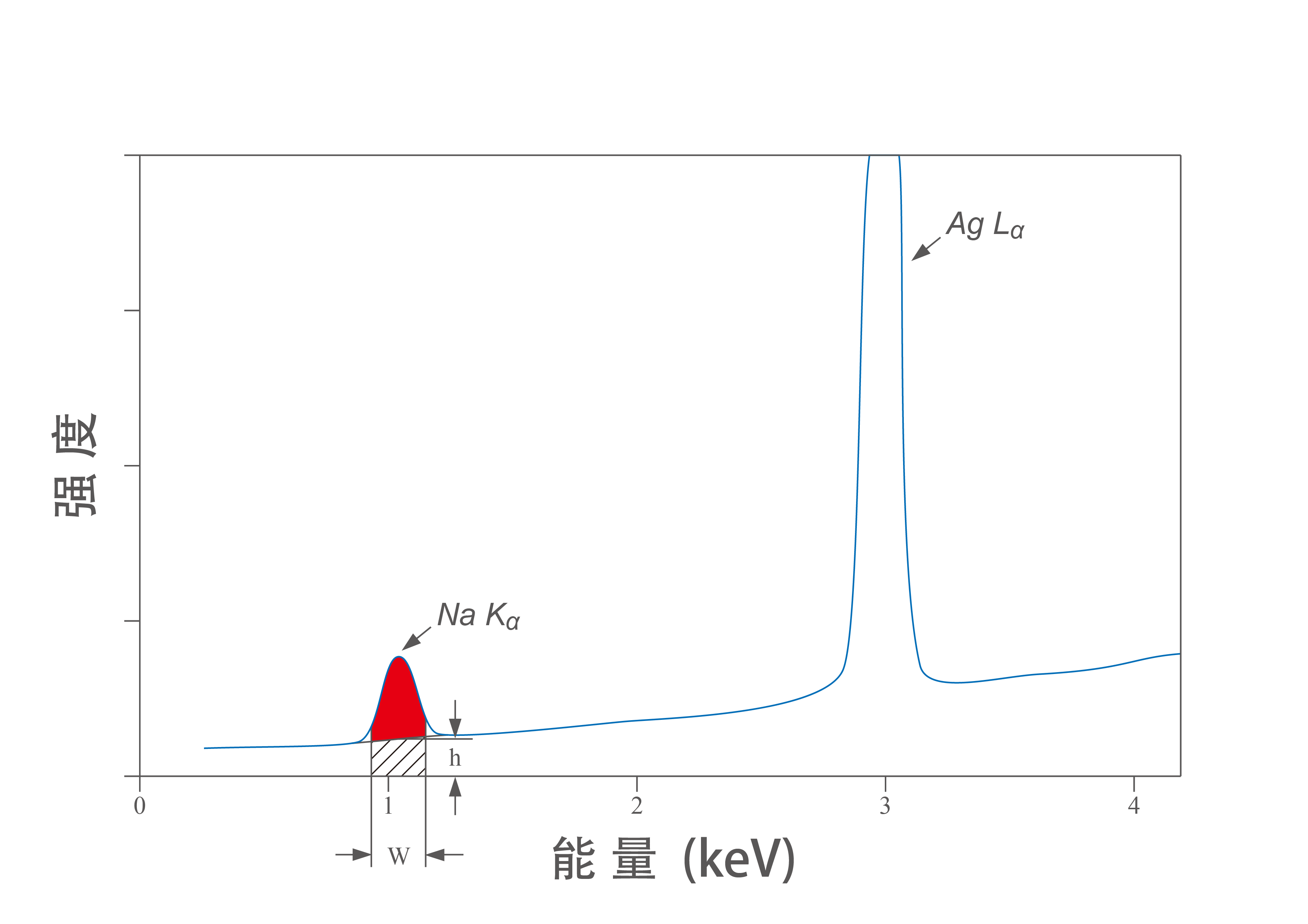 圖2、4中的H就是(1)和(2)式中的H,是全能峰Na峰的背景或曰本底的高度。由于這二種光譜儀的激發光源X射線管發出的X射線是直接照射到樣品上,所以這個高度是一樣的。